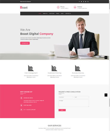 Boast – Corporate WordPress Theme is a clean and elegant design – suitable for agency, blog, business, company, corporate, creative, portfolio, professional etc.